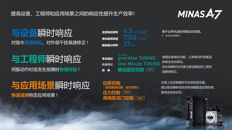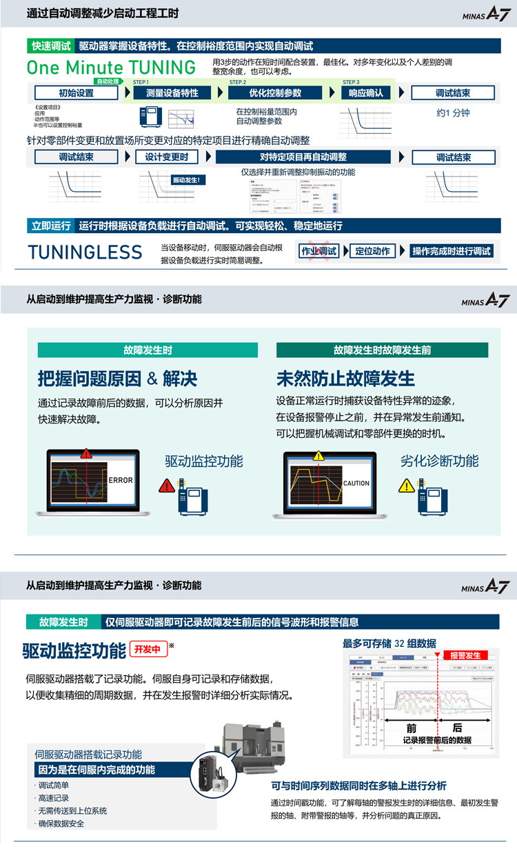 伺服智能化優(yōu)化人機(jī)作業(yè),智能化伺服可通過自動調(diào)試功能、擴(kuò)展維護(hù)功能和應(yīng)用優(yōu)化功能等可輕松實(shí)現(xiàn)過去需要開發(fā)工時(shí)的調(diào)試。提高人員、機(jī)器和應(yīng)用程序的響應(yīng)能力,并有助于提高生產(chǎn)力。